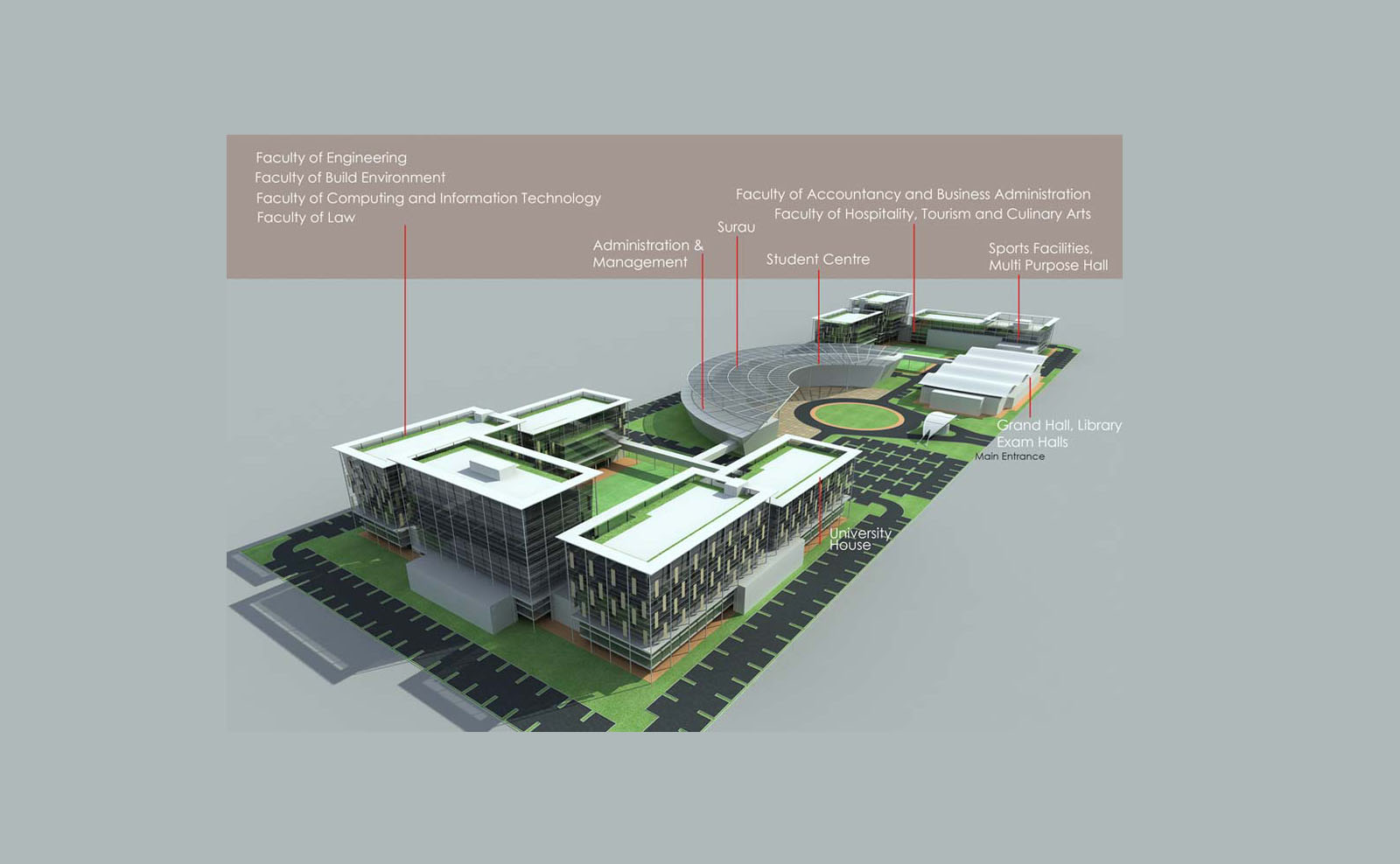 The development site measuring at approximately 24 acres and it is strategically located in the heart of Nusajaya, about 25km from Singapore via the Second Link Expressway and 15km from the Port of Tanjung Pelepas. It is also about 3km from Kota Iskandar, the administration centre of Johor State. The site is basically undulating terrain between 20m to 60m high consisting of secondary forest and oil palm plantation. The development of the university campus is to accommodate 10 000 students with learning faculties and other major facilities that are design quality, performance, security and resilience. The project will be a unique and practical building that will be the new landmark in Nusajaya. Being the region’s Education Hub, it offers a prestige learning experience with various top 100 universities in the world. |